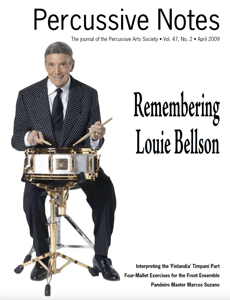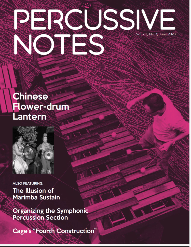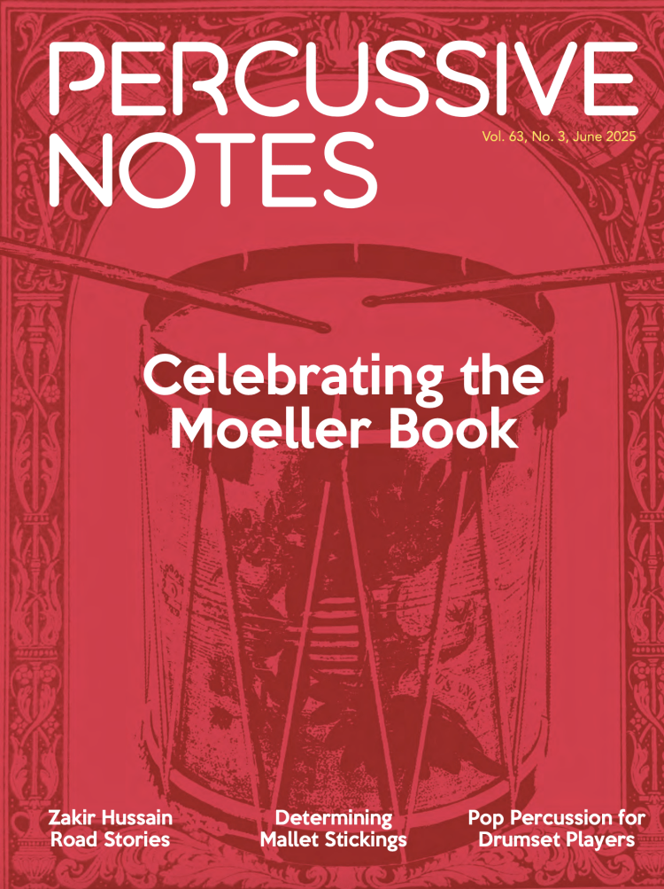 Publications Leading the Symphonic Percussion Section, Percussive Notes Vol. 63, No. 3, June 2025Download Organizing the Symphonic Percussion Section, Percussive Notes Vol. 62, No. 3, June 2023Download Marcos Suzano: Expanding the Pandeiro, Percussive Notes Vol. 47. No. 2., April 2009Download Portuguese Version (translated by Malcolm Lim and Barbara Oliveira-LimDownload Scott Feiner: Pandeiro Jazz, Percussive Notes Vol. 46, No. 5, October 2008Download South-Indian Vocalizations in Snare Drumming Pedagogy. Percussive Notes Vol. 43, No. 4, August 2005. 4,Download Share this: Share on X (Opens in new window) X Share on Facebook (Opens in new window) Facebook Share on LinkedIn (Opens in new window) LinkedIn Share on WhatsApp (Opens in new window) WhatsApp Email a link to a friend (Opens in new window) Email Like Loading...